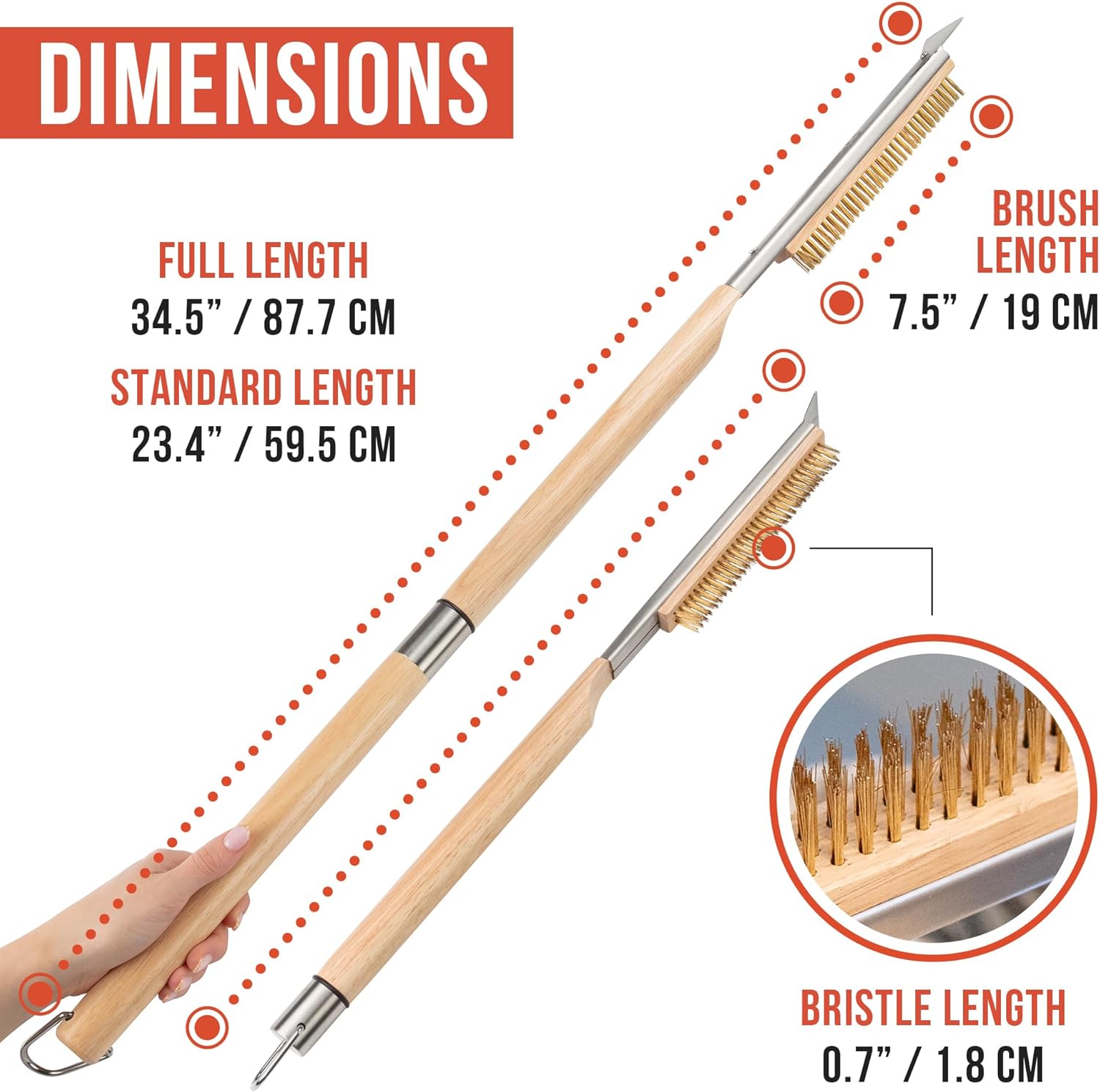 Chef Pomodoro Pizza Oven Brush with Scraper - Adjustable Handle (55cm to 87.7cm), Pizza Stone Brush, Pizza Oven Cleaning Brush, Outdoor Pizza Oven Accessories for Pizza Stones, BBQ Grill, and Ovens